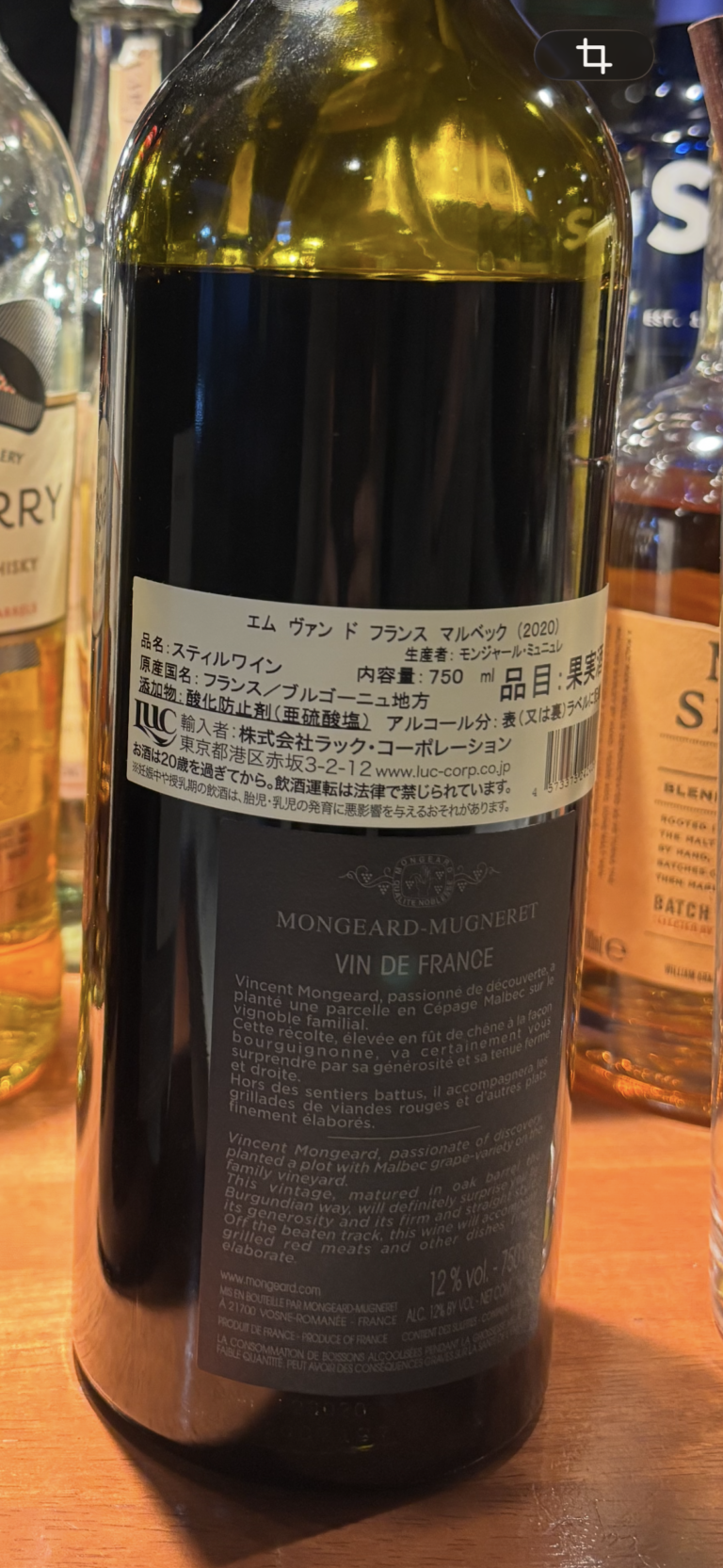 エム ヴァン ド フランス マルベック(モンジャール・ミュニュレ : MONGEARD-MUGNERET) / 2020