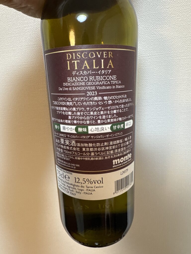 原語:DISCOVER ITALIA BIANCO RUBICONE / 国:イタリア / 産地:ルビコーネ IGT