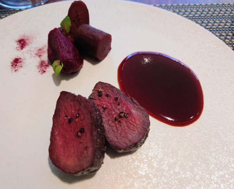 蝦夷鹿のローストと発酵ビーツ、ソースポワブラード